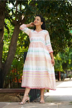 Phalguni floral Block Print Cotton Midi Dress – Lightweight & Comfortable dress
