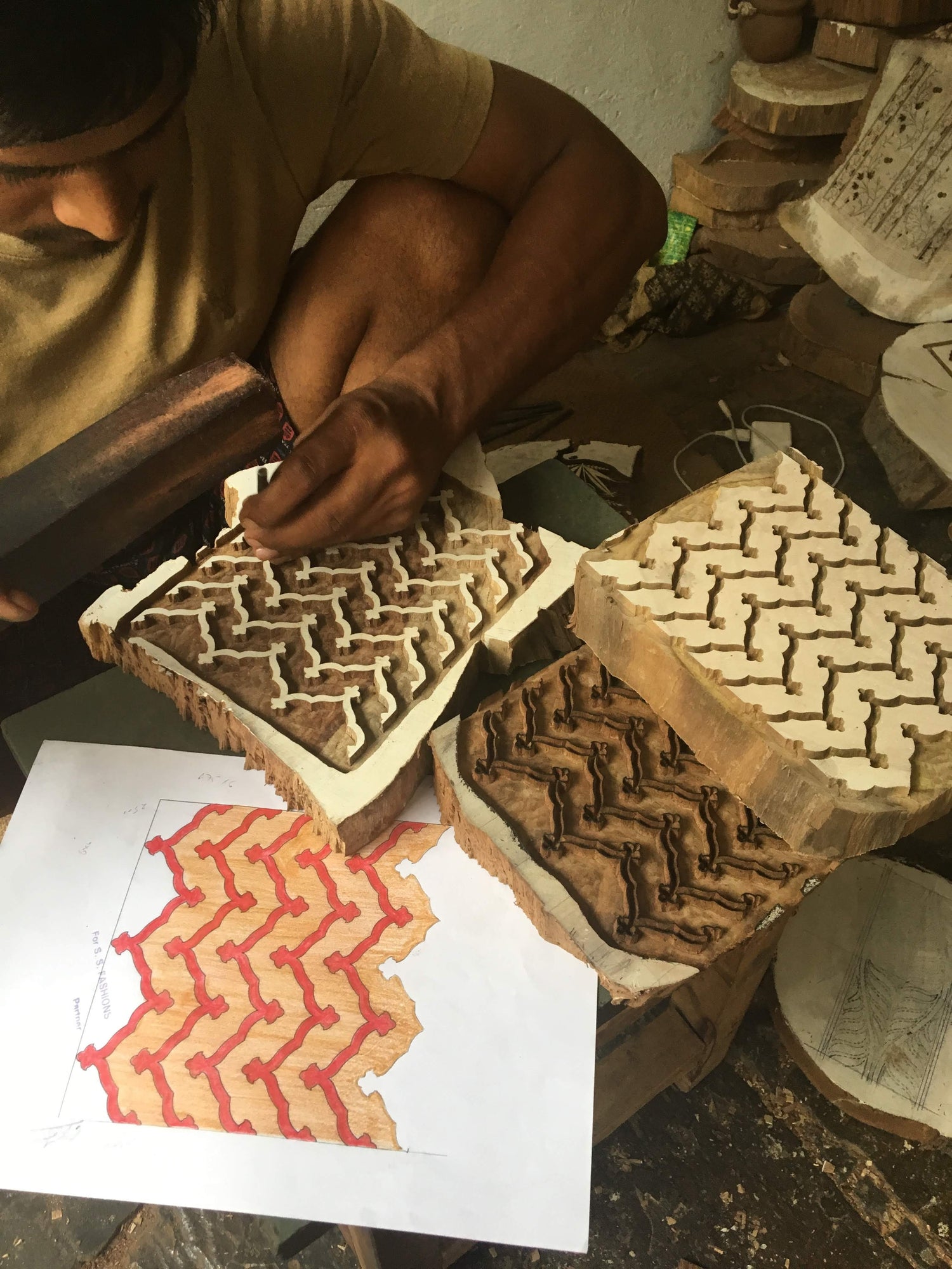 “BLOCK” means a wooden square piece with an engraved pattern on it, it is used to print on fabric with natural or synthetic dyes and this art is called block printing.
