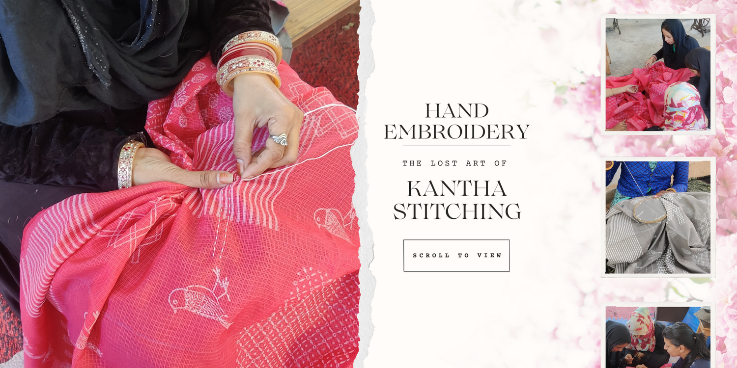 Kantha, a 500 year old popular style of embroidery that comes from West Bengal, displays the skill and talent of the rural women.