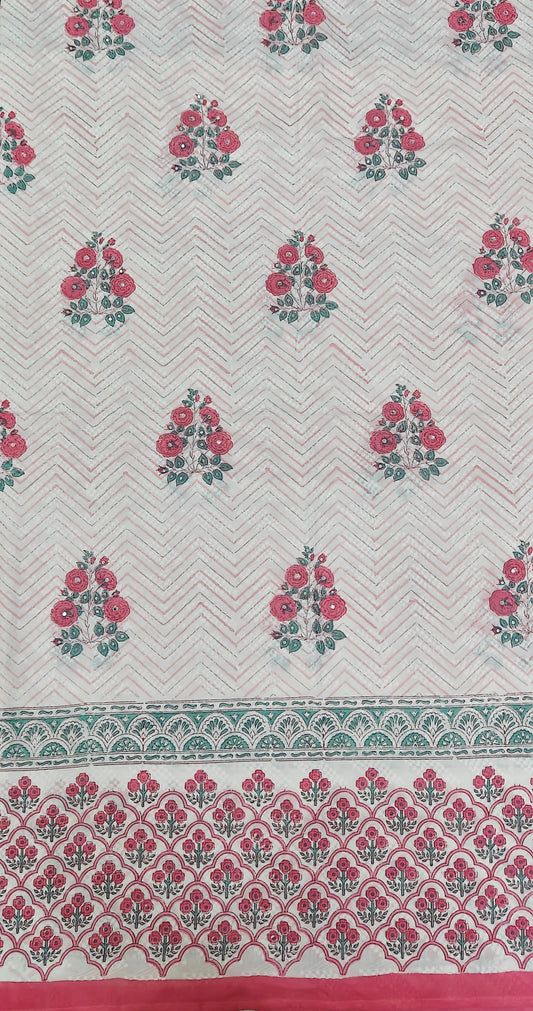 Parchitra-Pure Chanderi Suit Set with Vertical Border Block Print & Aari Hand Embroidery