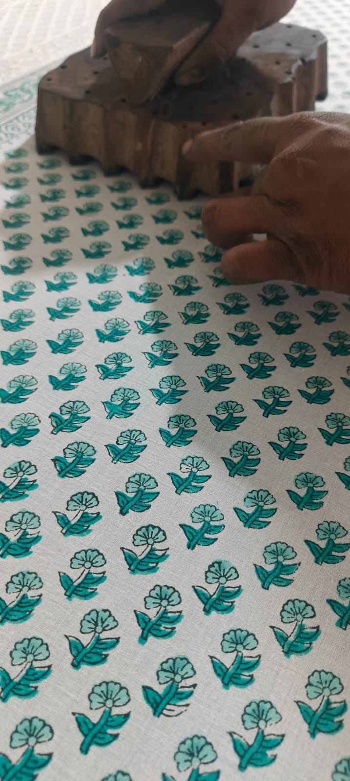 “BLOCK” means a wooden square piece with an engraved pattern on it, it is used to print on fabric with natural or synthetic dyes and this art is called block printing.