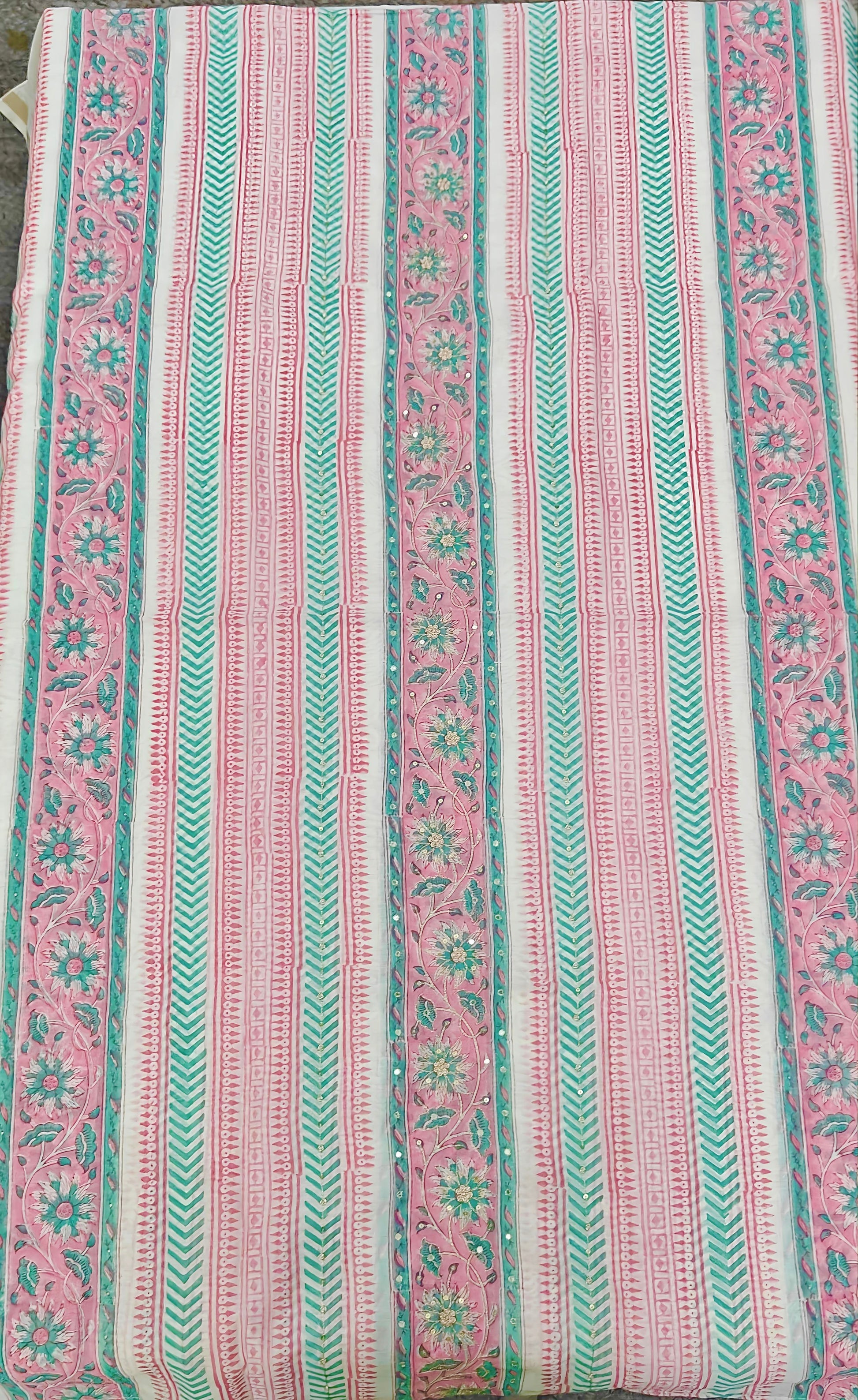 Parchitra-Pure Chanderi Suit Set with Vertical Border Block Print & Aari Hand Embroidery