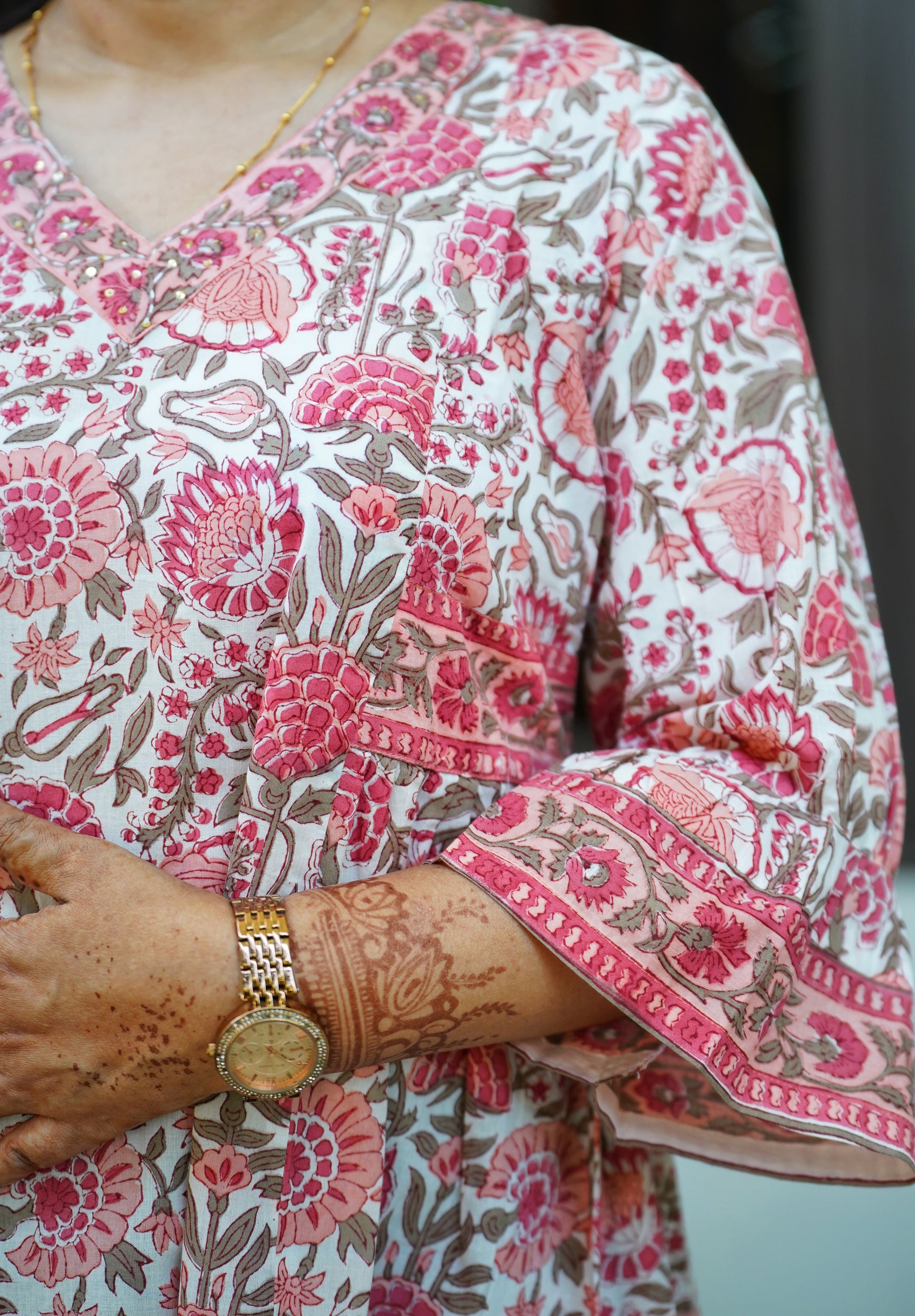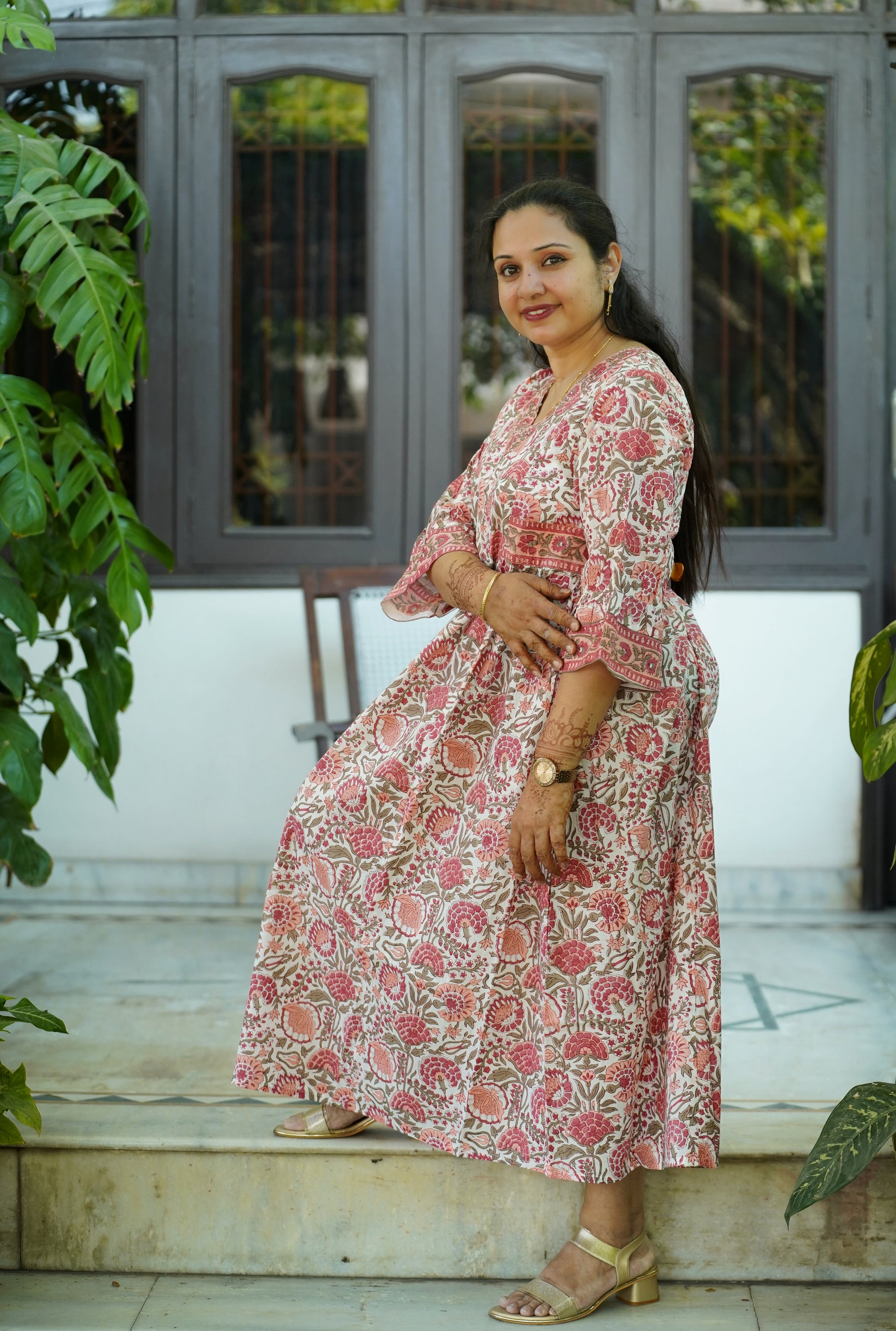 Phalguni floral Block Print Cotton Midi Dress – Lightweight & Comfortable dress